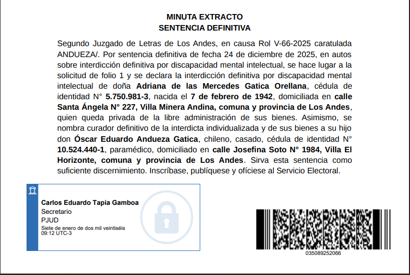 de Los Andes, por Sentencia de fecha 27 de noviembre de 2025, se ha decretado la