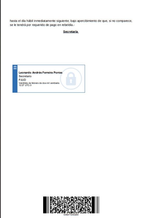 comisión legal del 0.0000% anual sobre el saldo del capital garantizado por el Fondo de Garantía para Pequeños Empresarios (FOGAPE), más intereses pactados y costas, requerir de pago al deudor, y disponer se siga adelante esta ejecución hasta que a mi representada se le haga entero y cumplido pago de lo adeudado, con expresa condena en costas. PRIMER OTROSÍ: Acompaña documentos bajo apercibimiento legal y solicita custodia. SEGUNDO OTROSÍ: Señala bienes para la traba del embargo y designa depositario. TERCER OTROSÍ: Se tenga presente. CUARTO OTROSÍ: Señala correo electrónico. QUINTO OTROSÍ: Patrocinio y poder. Con fecha 07 de diciembre de 2022: Pospone inicio de la tramitación. Presentación de fecha 07 de diciembre de 2022: Acompaña documentos. Con fecha 09 de diciembre de 2022: A la presentación del 07 de diciembre del presente, a folio 3. Por cumplido lo ordenado, estese a lo que se resolverá: Proveyendo demanda del 06 de diciembre del presente, a folio 1. A lo principal, despáchese mandamiento de ejecución y embargo; al primer otrosí, téngase por acompañado un pagaré, bajo el apercibimiento que indica, custódiese; al segundo otrosí, téngase presente los bienes señalados, en cuanto al depositario provisional, se designa al propio ejecutado, bajo su responsabilidad legal; al tercer otrosí, téngase presente y por acompañada personería de abogado, con citación; al cuarto otrosí, téngase presente el correo electrónico para los efectos del artículo 49 del Código de Procedimiento Civil. Sin perjuicio de lo anterior, en cuanto a la solicitud notificarse a dicho medio electrónico, no ha lugar, por carecer este tribunal de los recursos técnicos necesarios; al quinto otrosí, téngase presente. Atendido que el litigante no fijó domicilio según lo dispuesto en el artículo 49, en relación con el artículo 53, ambos del Código de Procedimiento Civil, notifíquesele por el estado diario todas las resoluciones que deban notificarse por cédula, mientras no efectúe la designación correspondiente.- En Los Andes, a nueve de diciembre de dos mil veintidós: Mandamiento de Ejecución y Embargo. Un Ministro de Fe requerirá de pago a JUAN ANDRES MEZA MUÑOZ, domiciliado en Avenida Alessandri N°174, San Esteban, para que en el acto del requerimiento pague a BANCO DEL ESTADO DE CHILE, o a quien sus derechos representen, la suma de $5.359.818.- (cinco millones trescientos cincuenta y nueve mil ochocientos dieciocho pesos), más intereses y costas. No verificado el pago en el acto del requerimiento, se procederá a trabar embargo sobre bienes de propiedad del demandado, más intereses y costas. Nombrase depositario de los bienes que se embarguen al propio ejecutado, bajo su responsabilidad legal. Presentación de fecha 14 de julio de 2025: Solicita notificación por avisos. Con fecha 17 de julio de 2025: A la presentación de fecha 14 de julio de 2025 a folio 54. Atendido el mérito de los antecedentes, como se pide, notifíquese en conformidad al artículo 54 del Código de Procedimiento Civil, debiendo publicarse 3 veces, en fechas distintas, en el diario “Los Andes Online”, un aviso que contenga extracto de la demanda, de su proveído y de la presente resolución, debiendo cumplirse además con la publicación en El Diario Oficial, según lo dispuesto en el inciso final del citado artículo. Para la confección del extracto, el interesado deberá presentar el proyecto a través de la Oficina Judicial Virtual, en el módulo especialmente habilitado para tal efecto. Para el requerimiento de pago, se cita al demandado al tercer día hábil siguiente a la última notificación por avisos, a las 10:00 horas, a la secretaría del tribunal, si recayere en sábado el plazo se extenderá
