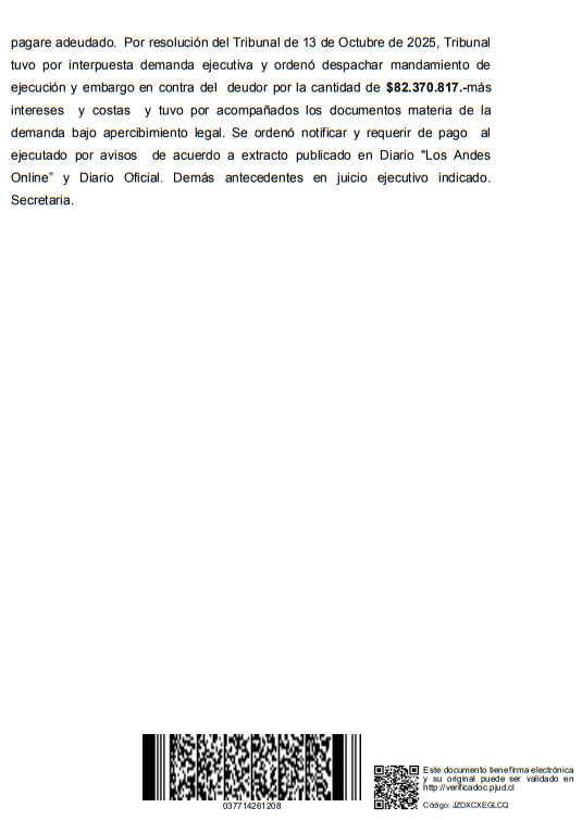 ejecución y embargo en contra del deudor por la cantidad de $82.370.817.-más