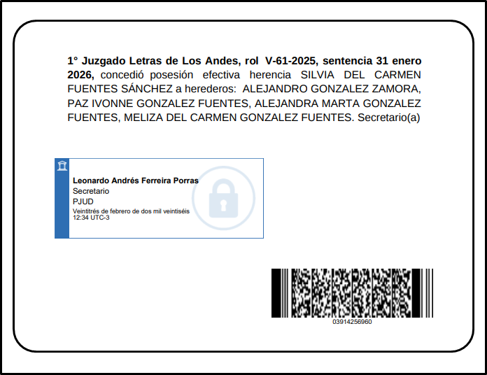 1° Juzgado Letras de Los Andes, rol V-61-2025, sentencia 31 enero